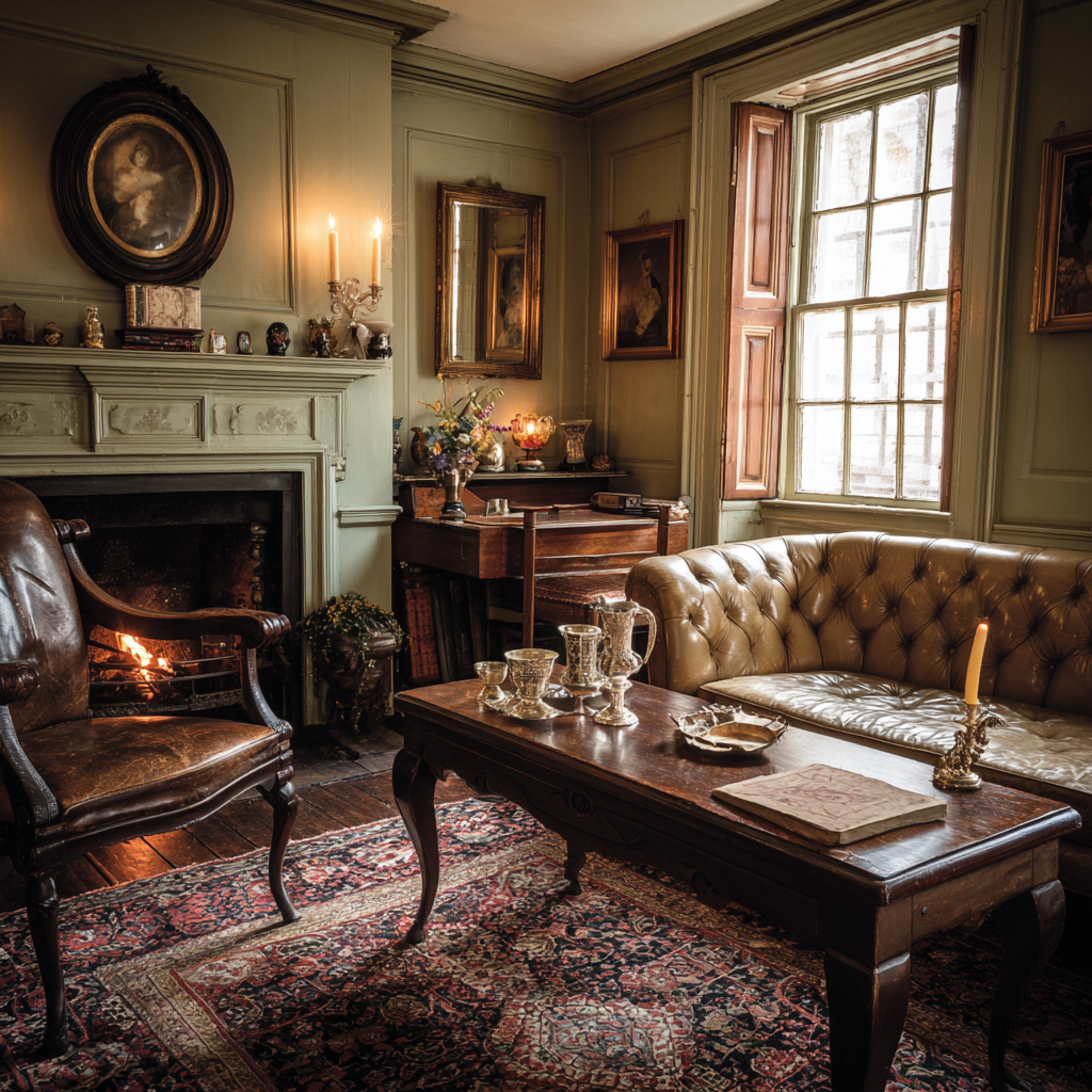 As the new republic matured, Early American simplicity began to mingle with the refined proportions of Federal style. Classical symmetry, delicate plaster details, and lighter color tones introduced a sense of grace without losing the handmade American spirit.