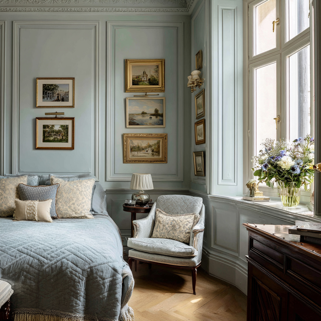 Pastel blues, pearl gray, soft lilac, and muted greens replaced the dark Victorian tones. Edwardian rooms feel open and sunlit, with color used to refresh rather than overwhelm.