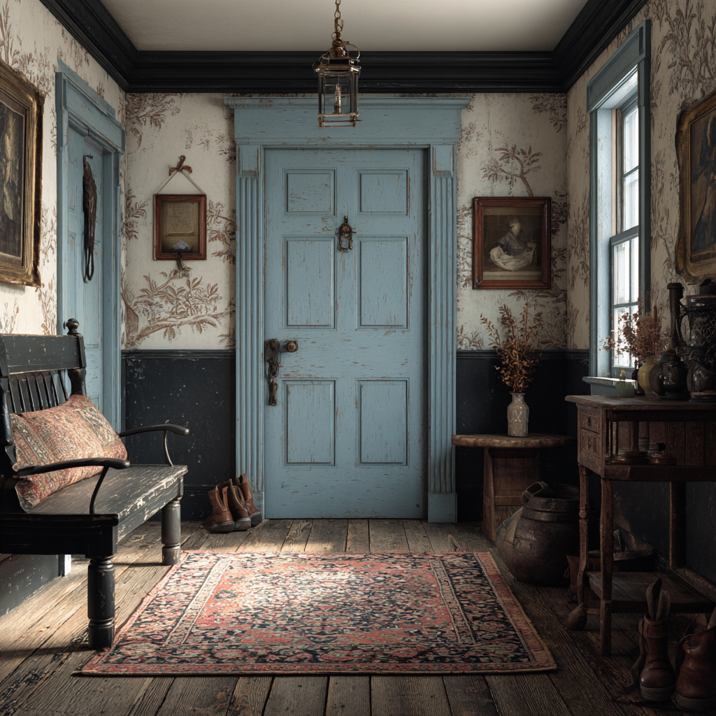 In many homes, paint itself became a decorative language. Simple milk paints, natural pigments, and hand-mixed washes created surfaces that felt soft, matte, and deeply human. Painted chairs, cupboards, and chests often carried subtle striping, stenciling, or floral motifs—humble expressions of artistry within the daily rhythm of domestic life.
