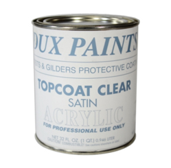 'Acrylic Topcoat' is a non-reactive, premium water clear sealer for genuine and metal leaf. Made from acrylic copolymers, Acrylic Topcoat provides protection from abrasion, water and ultra violet light.